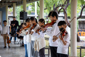 華德福教育以健康、平衡的方式,追求孩子在意志(身)、情感(心)及思考(靈)等三個層面能力的全方位成長。富創造性的藝術、手工、肢體韻律及音樂等課程平衡厚實,與整體的語文、數學、自然及社會課程,相互間密切結合,以滋養整個孩子,著重頭腦、心性與四肢的均衡發展。希望在孩子「在最適切的時機、也是孩子本能上需要的時間點上,提供給他們最佳品質的教育」。